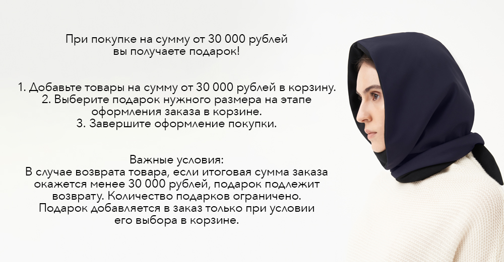 При покупке от 30 000 ₽ — капор-косынка в подарок