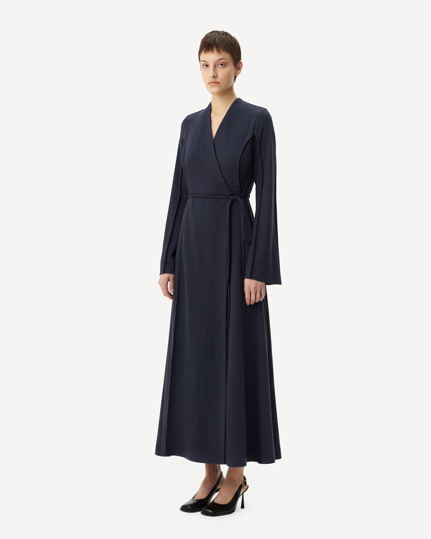 - Пальто миди Пальто миди прямого силуэта из джерси с льняной текстурой.