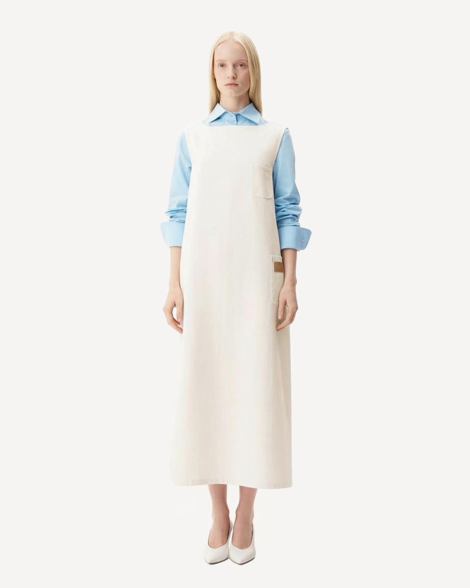 - Платье джинсовое Платье из денима в оттенке «экрю» прямого силуэта длины макси.