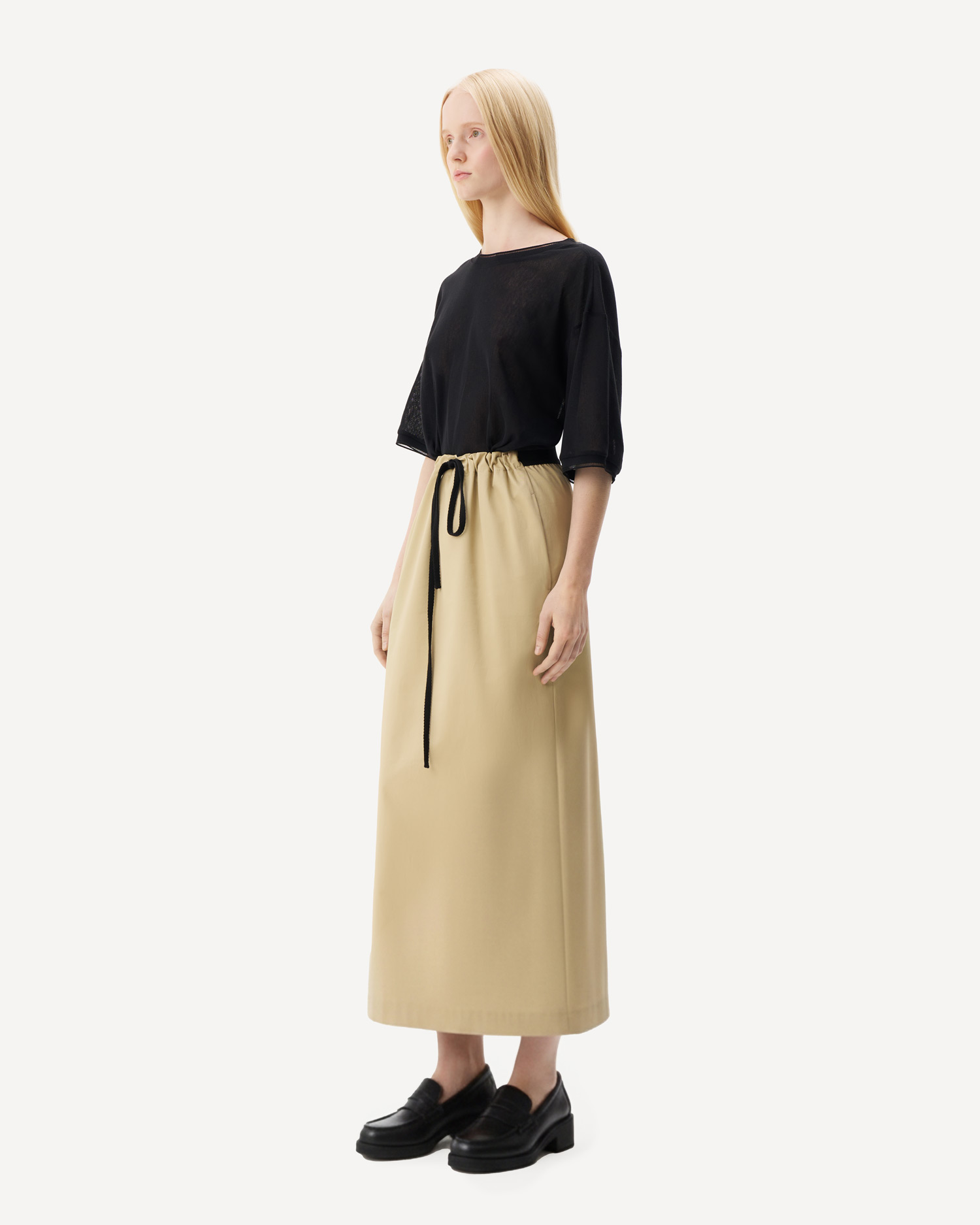 - Юбка прямая в пол Юбка прямого силуэта с открытыми срезами цвета тапиока в длине макси
