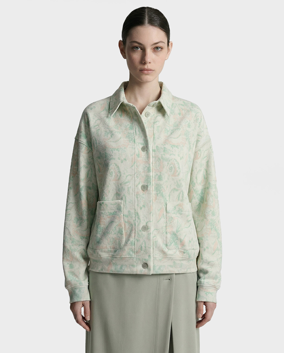 - Жакет с разрезами, зеленый Женский жакет цвета зелёной ивы с расширенной линией плеча. Однобортный, три пуговицы, разрезы по бокам.