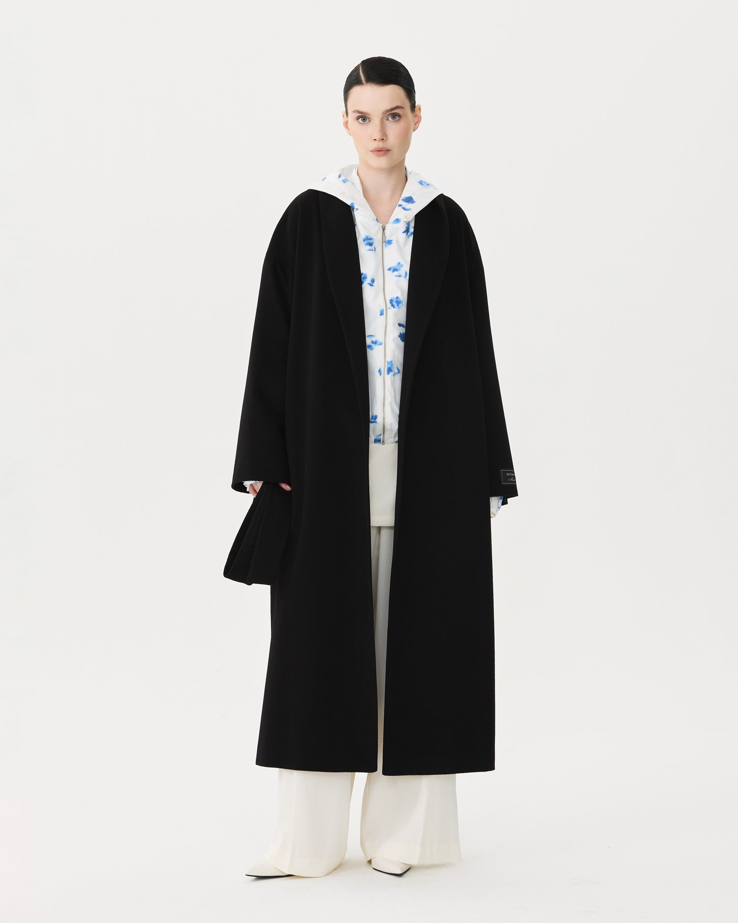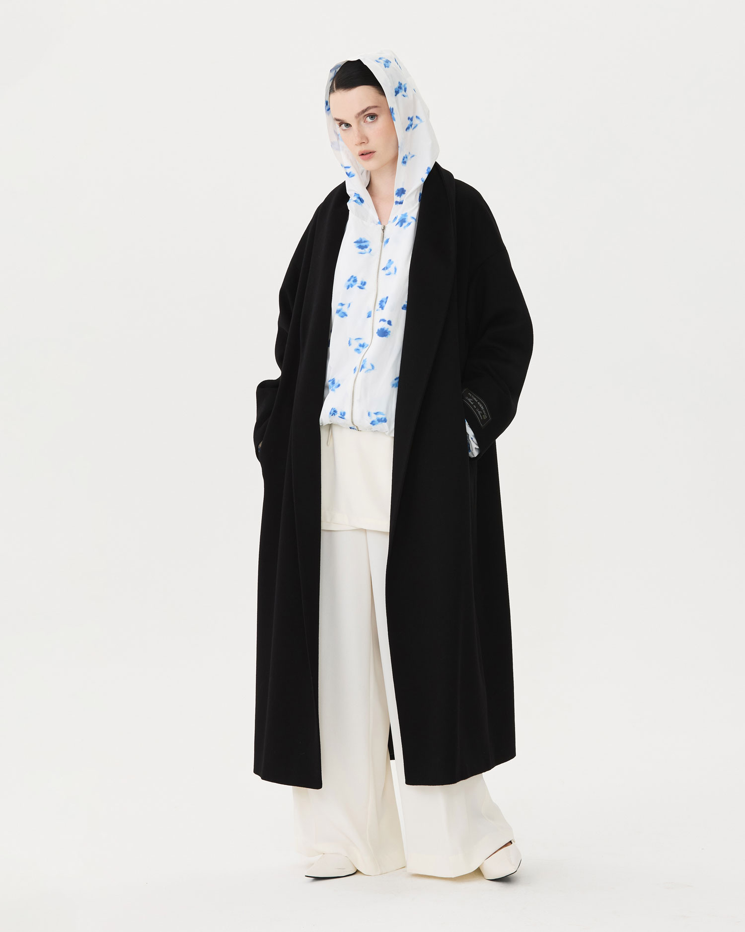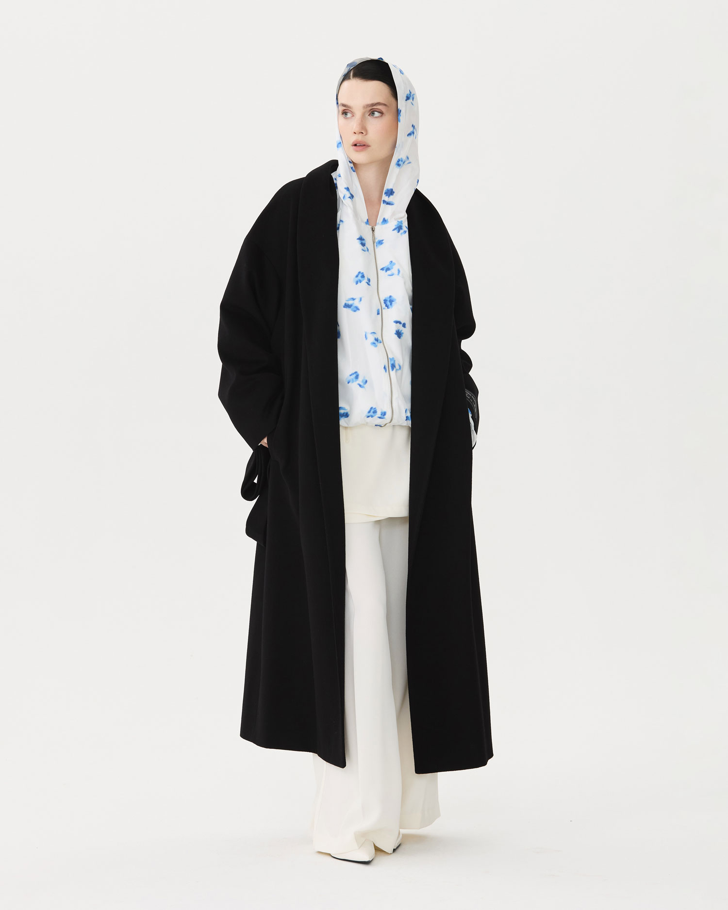 Бомбер с капюшоном из тафты с рисунком в виде синих цветов с молнией