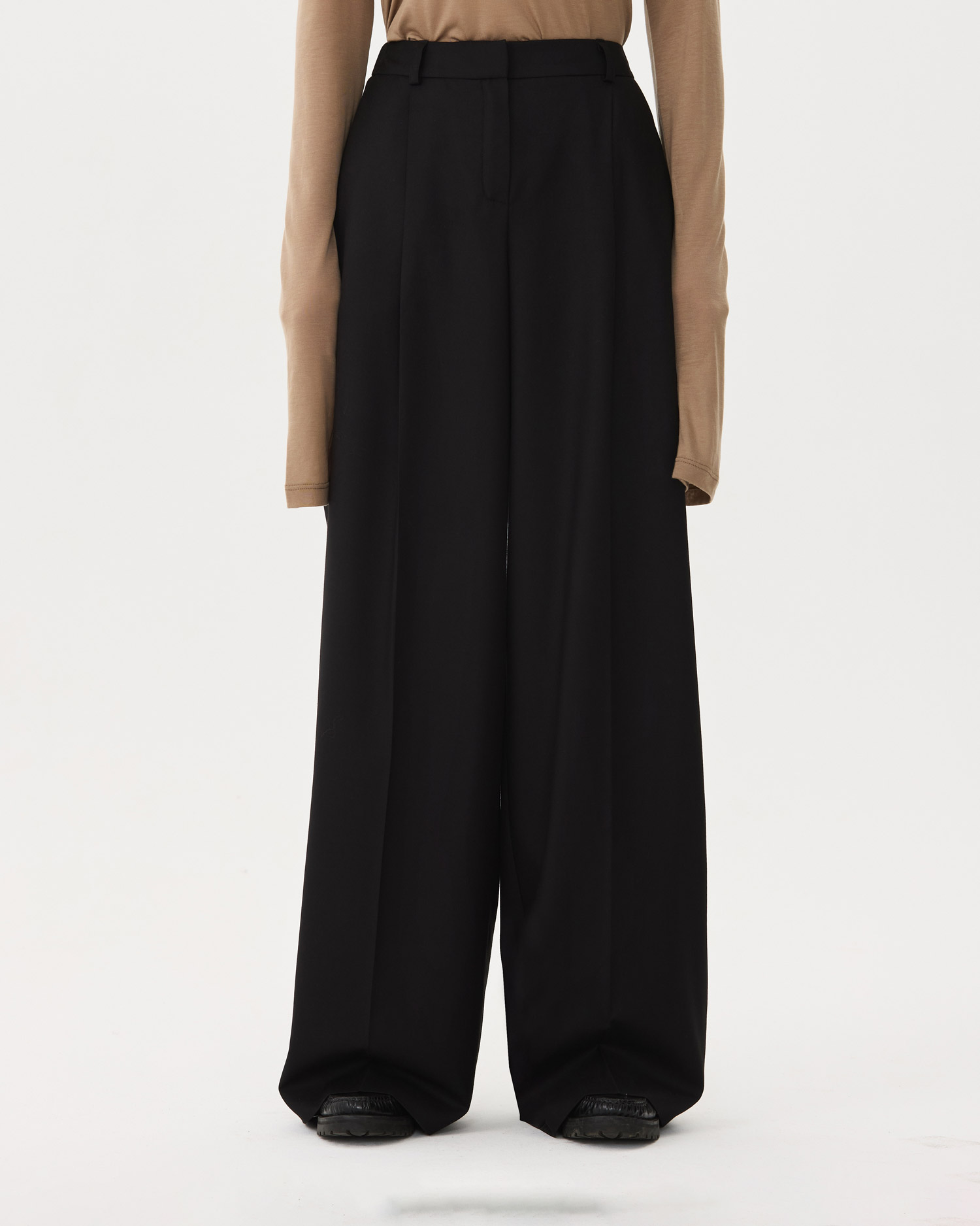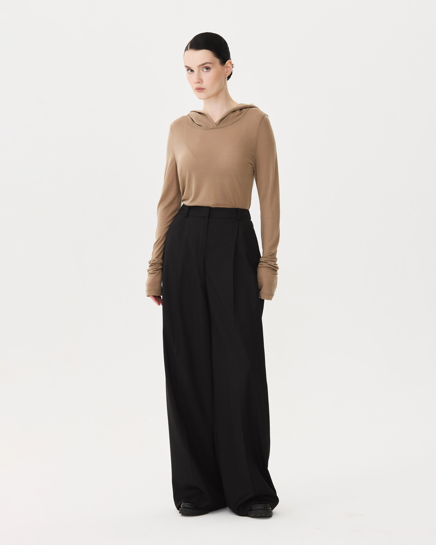 Брюки-соло. Они хороши и как вечерние с рубашкой, и как деловые с водолазкой, худи или лонгсливом.