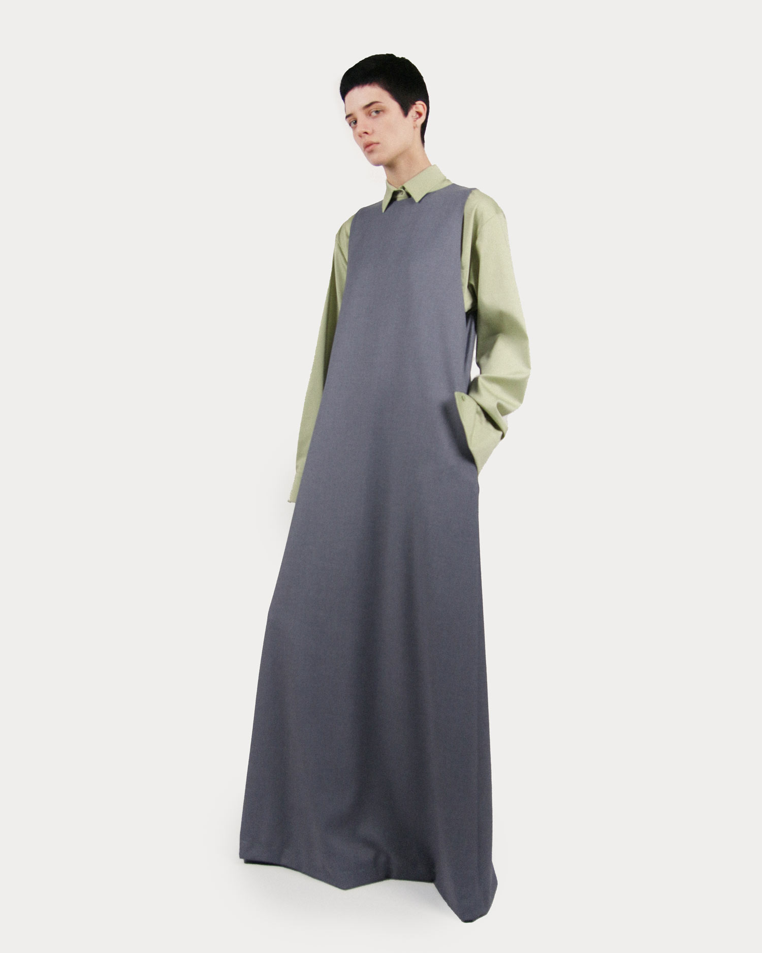 А-силуэт макси, выполненный из высококачественной костюмной ткани и полностью на подкладке для комфорта. Круглый вырез горловины и практичные карманы, незаметно вшитые в боковые швы, делают его идеальным выбором для современного образа